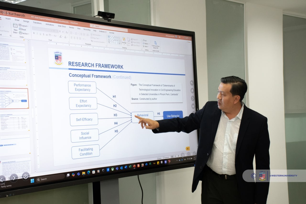 ព្រឹកថ្ងៃទី២៩ ខែកក្កដា ឆ្នាំ២០២៥ សាកលវិទ្យាល័យវេស្ទើនបានរៀបចំពិធីការពារសំណើស្រាវជ្រាវថ្នាក់បណ្ឌិត សម្រាប់បេក្ខជន៖ លោក អ៊ន សុគន្ធារ័ត្ន។