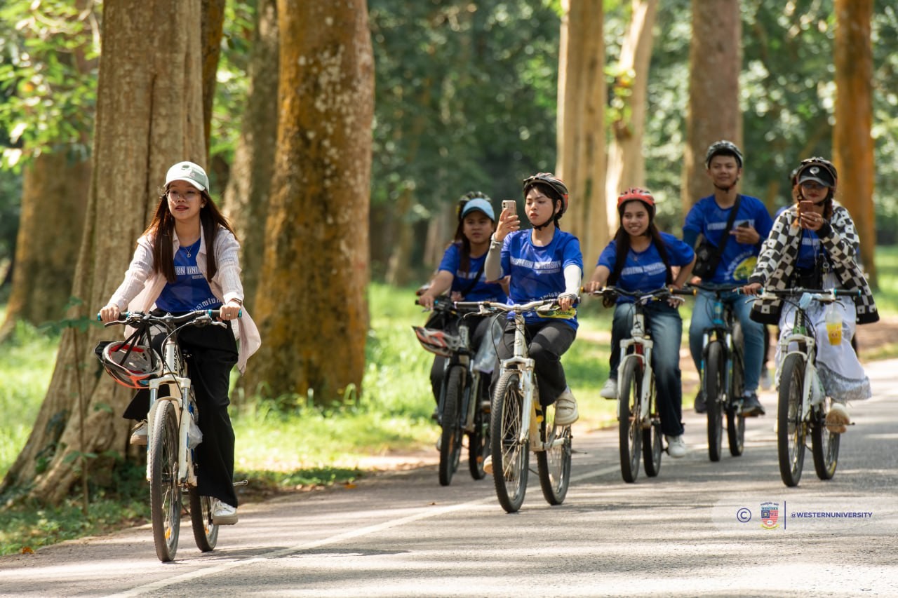 ទិដ្ឋភាពពីដំណើរកម្សាន្ត និងកម្មវិធីជិះកង់ រៀបចំឡើងក្នុងគោលបំណងដ៏ពិសេសគឺ ការចូលរួមផ្សព្វផ្សាយអំពីយុទ្ធនាការទេសចរណ៍ក្នុងរដូវកាលបៃតង Green Season Campaign របស់ក្រសួងទេសចរណ៍ ដែលទទួលការស្វាគមន៍យ៉ាងកក់ក្តៅពីប្រធានមន្ទីរទេសចរណ៍ ខេត្តសៀមរាប និងអជ្ញាធរអប្សារា ក្នុងកម្មវិធីនេះផងដែរក៏មានការលើកទឹកចិត្តដល់ប្រធាន និងអនុប្រធានថ្នាក់ទាំងអស់ ដែលបានបង្ហាញពីស្មារតីដឹកនាំ និងការប្តេជ្ញាចិត្តក្នុងការគ្រប់គ្រងវិន័យរបស់និស្សិតផងដែរ។