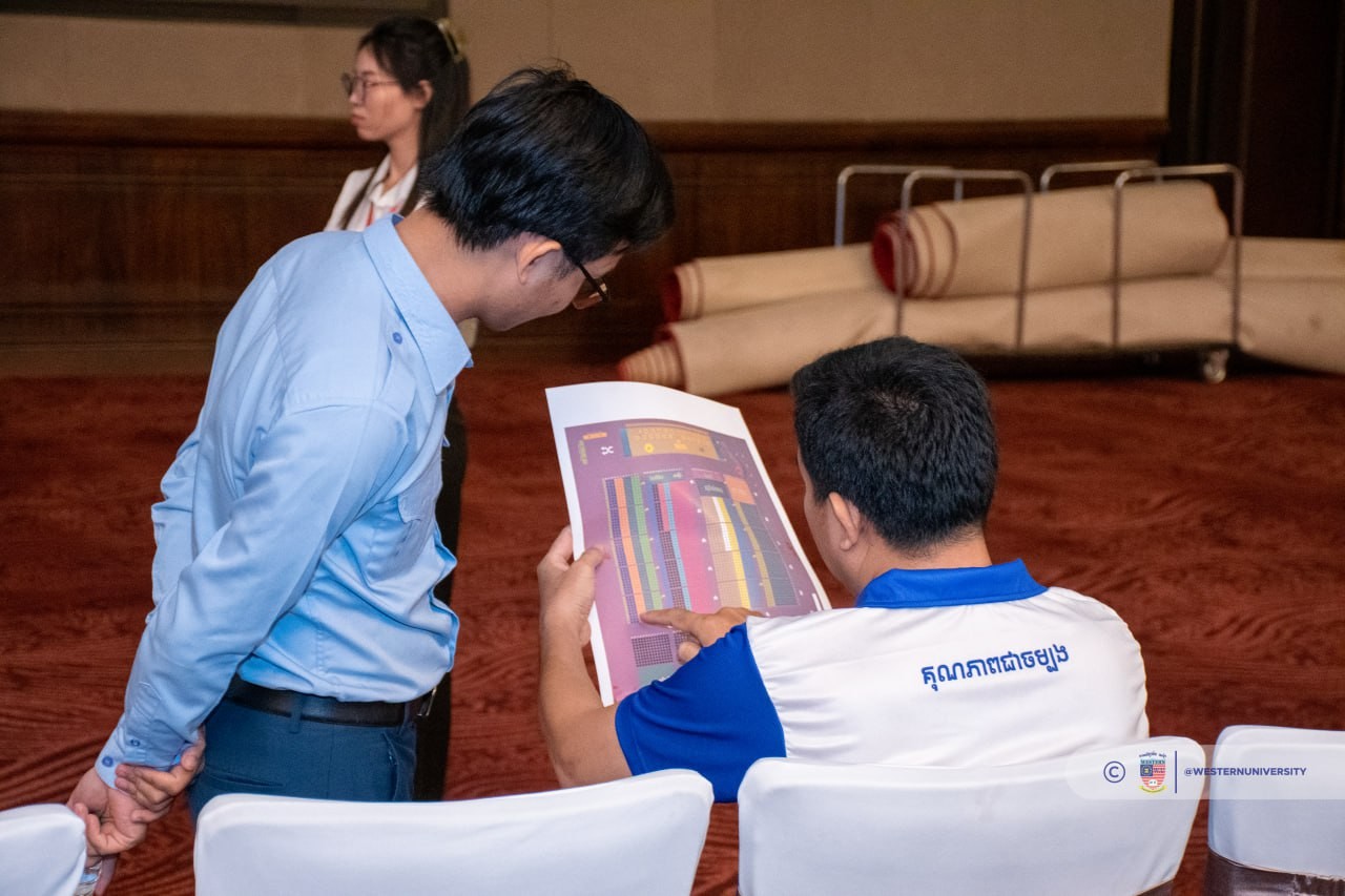និស្សិតជ័យលាភីបញ្ចប់ការសិក្សា បានចុះពិនិត្យលម្អិតក្នុងទីតាំងរៀបចំកម្មវិធីជាក់ស្តែង ការរៀបចំពិធីការ កន្លែងអង្គុយឲ្យបានងាយស្រួល និងបំពេញធាតុចូលបន្ថែមនានាដើម្បីឲ្យដំណើរប្រព្រឹត្តិទៅនៃពិធីដំណើរការទៅយ៉ាងរលូន និងល្អឥតខ្ចោះ ក្រោមអធិបតីភាពដ៏ខ្ពង់ខ្ពស់ ឯកឧត្តមបណ្ឌិតសភាចារ្យ ហង់ជួន ណារ៉ុន ឧបនាយករដ្ឋមន្ត្រីរដ្ឋ មន្ត្រីក្រសួងអប់រំ យុវជន និងកីឡា តំណាងដ៏ខ្ពង់ខ្ពស់បំផុត សម្តេចមហាបវរធិបតី ហ៊ុន ម៉ាណែត នាយករដ្ឋមន្ត្រីនៃព្រះរាជាណាចក្រកម្ពុជា ដែលនឹងប្រព្រឹត្តិទៅនៅថ្ងៃទី១៣ ខែវិច្ឆិកា ឆ្នាំ២០២៥ ក្នុងសាលសន្និបាត ភីអេច ហ្រ្គេនហល យូរ៉ូ 2+3 (បុរីប៉េងហ៊ួតបឹងស្នោរ)។